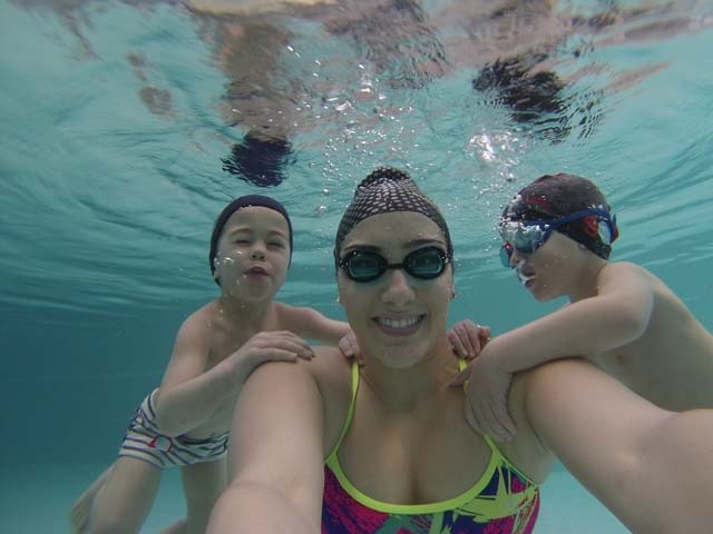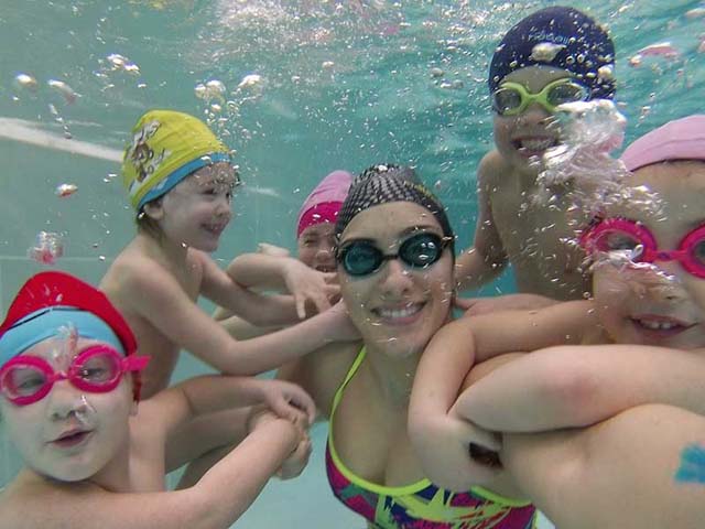 I bambini della Scuola dell’Infanzia Klab Kids durante il periodo estivo si recano nelle piscine esterne della Klab per svolgere i corsi di nuoto.