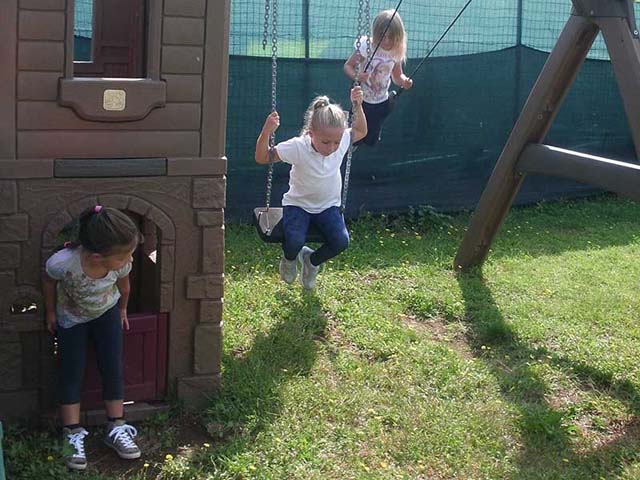 Qui i bambini possono divertirsi in tutta sicurezza e libertà grazie agli ampi spazi esterni, attrezzati e riparati, durante tutto il periodo dell’anno scolastico.